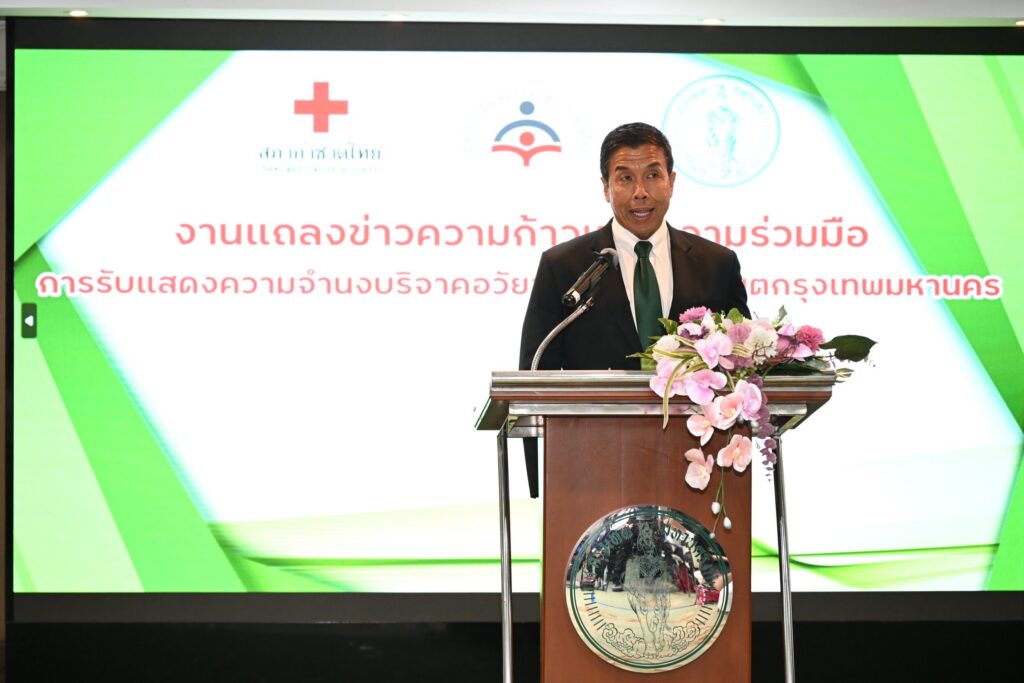 วันที่ 19 สิงหาคม 2568 นายชัชชาติ สิทธิพันธุ์ ผู้ว่าราชการกรุงเทพมหานคร พร้อมด้วย รศ.นพ.สุภนิติ์ นิวาตวงศ์ รองผู้อำนวยการฯ รักษาการในตำแหน่งผู้อำนวยการศูนย์รับบริจาคอวัยวะ สภากาชาดไทย นายกลินท์ สารสิน กรรมการสภากาชาดไทย และประธานคณะกรรมการส่งเสริมกิจการศูนย์รับบริจาคอวัยวะ สภากาชาดไทย นางสาวตรีนุช สันติกุล ผู้ช่วยผู้อำนวยการ สำนักงานยุวกาชาดและอาสาสมัครกาชาด สภากาชาดไทย แถลงข่าว “ความก้าวหน้าความร่วมมือการรับแสดงความจำนงบริจาคอวัยวะที่สำนักงานเขต กรุงเทพมหานคร” เพื่อเป็นการเพิ่มช่องทางการบริจาคอวัยวะ รวมถึงประชาชนเกิดความเข้าใจที่ถูกต้องในการบริจาคอวัยวะ พร้อมทั้งเชิญชวนประชาชนร่วมบริจาคอวัยวะช่วยเหลือผู้เจ็บป่วยที่รอการรักษา